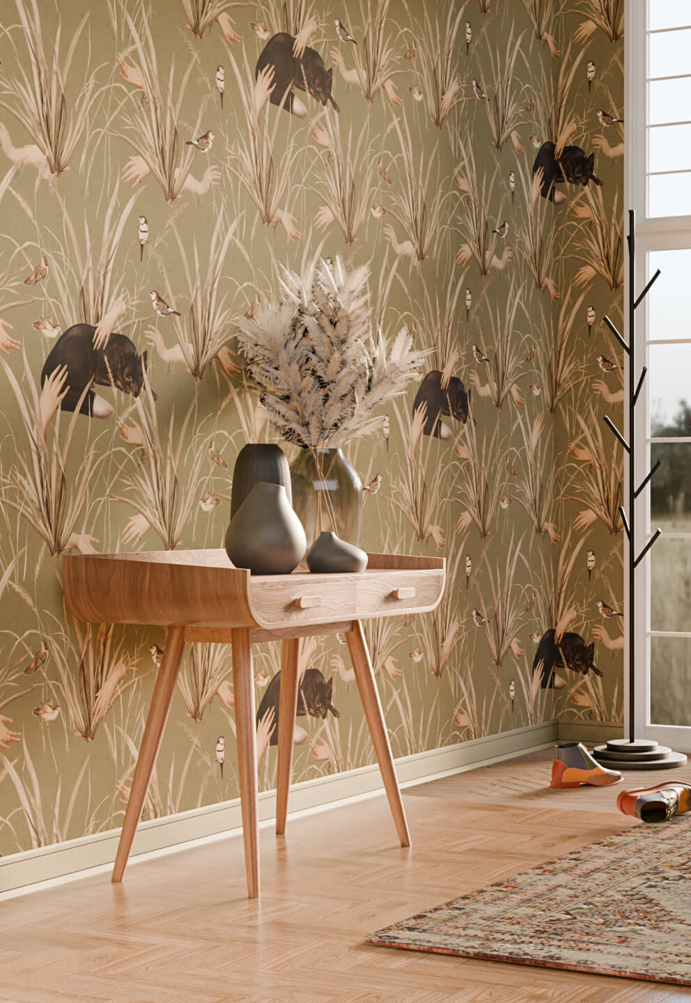 Ciemny, roślinno zwierzęcy wzór tej tapety pozwoli na wprowadzenia tajemniczego klimatu do Twojego wnętrza. Poczuj się jak na rozlewiskach Luizjany!