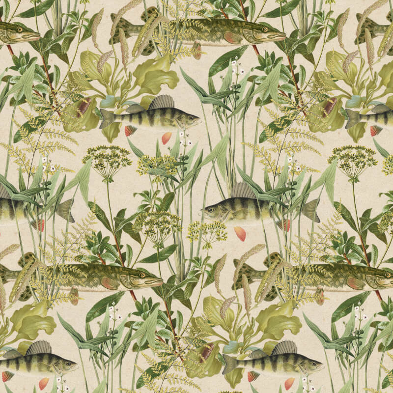 Botaniczna tapeta ścienna z rybami i roślinami wodnymi