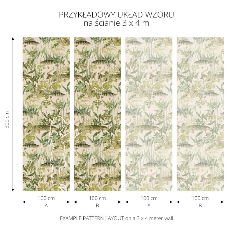 Zamów tapetę wpisując największe wartości powiększone o zapas w odpowiednie pola przy zamówieniu. Po jego złożeniu otrzymasz prostą wizualizację układu tapety na ścianie do zatwierdzenia. Jeśli masz szczególne życzenie co do wyeksponowania jakiegoś elementu tapety - np. chcesz lwa tuż nad łóżkiem, zaznacz to w uwagach do zamówienia (jest to uwzględnione w podstawowej cenie tapety). Jeśli masz życzenie możesz też zamówić tapetę w spersonalizowanym kolorze lub nieco zmienić wielkość elementów (za dodatkową opłatą ustalaną indywidualnie).